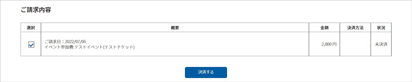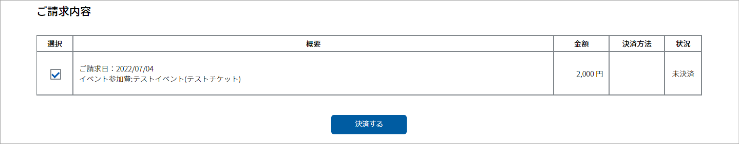 ③支払うご請求内容を選択欄から「選択」し、「決済する」をクリックします。